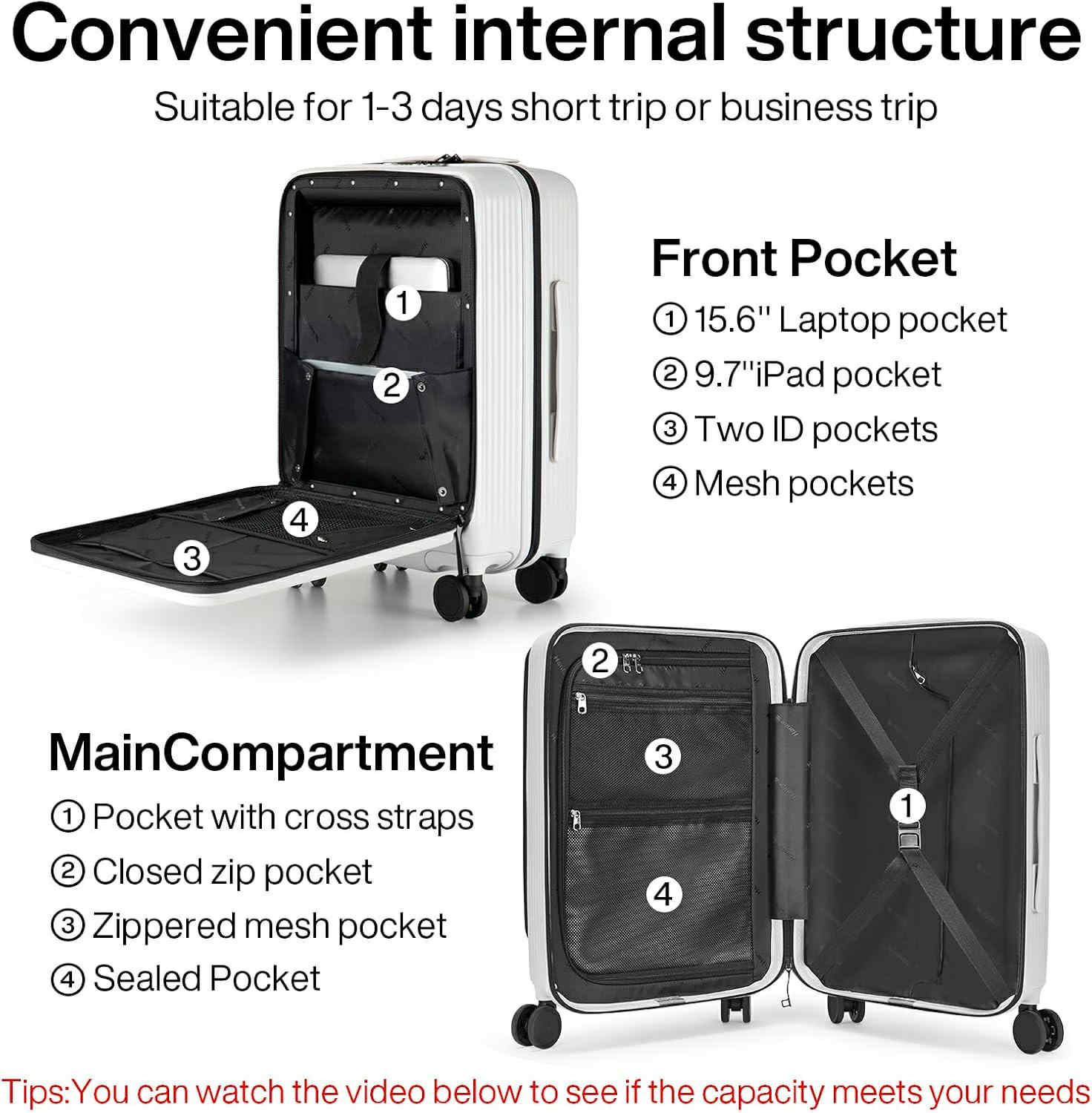 Travel smart and in style with the Hanke 20" Carry-On with Front Pocket. Designed for modern travelers, this sleek hard shell suitcase keeps your essentials secure and organized wherever you go. Front pocket for easy access to laptop, phone and tablet - never fumble in the TSA line again!