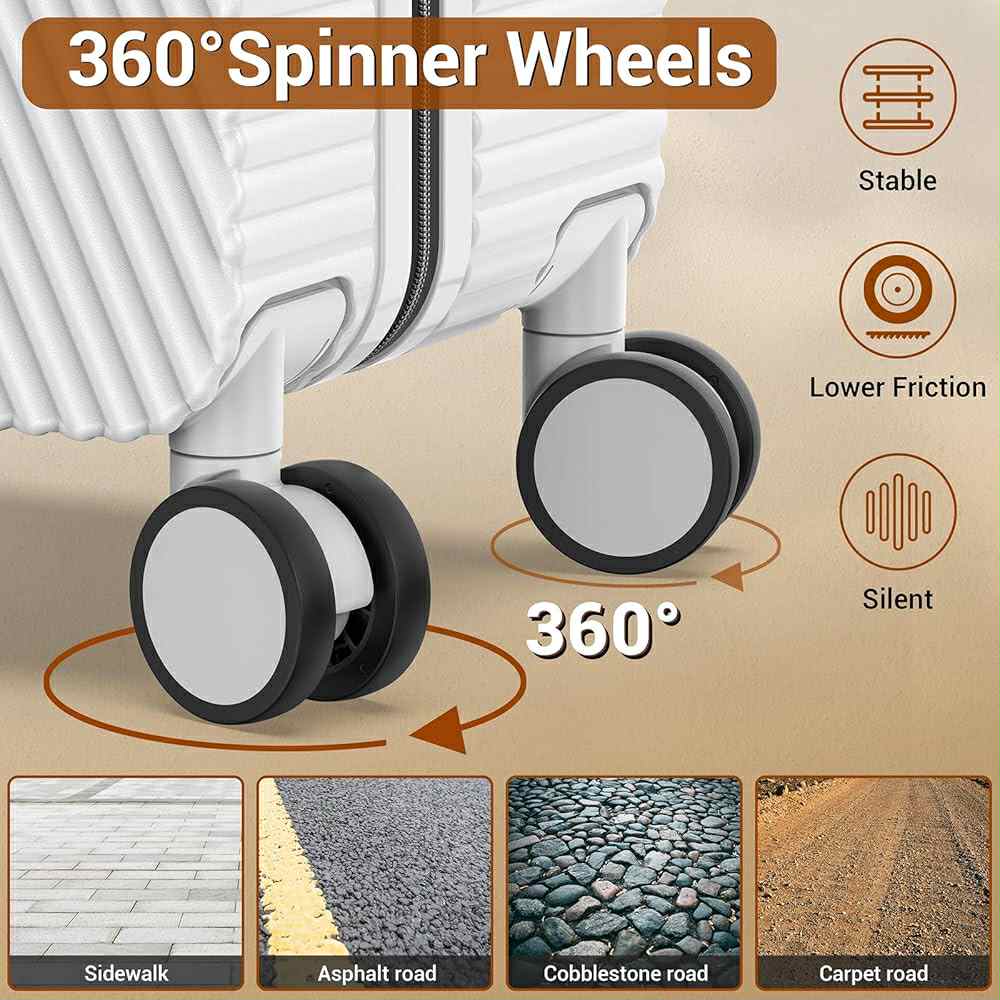 Glide effortlessly through airports with 360° spinner wheels designed for smooth, quiet rolling on any surface. The unique wide bounce handle keeps your suitcase steady (and your bags from toppling).